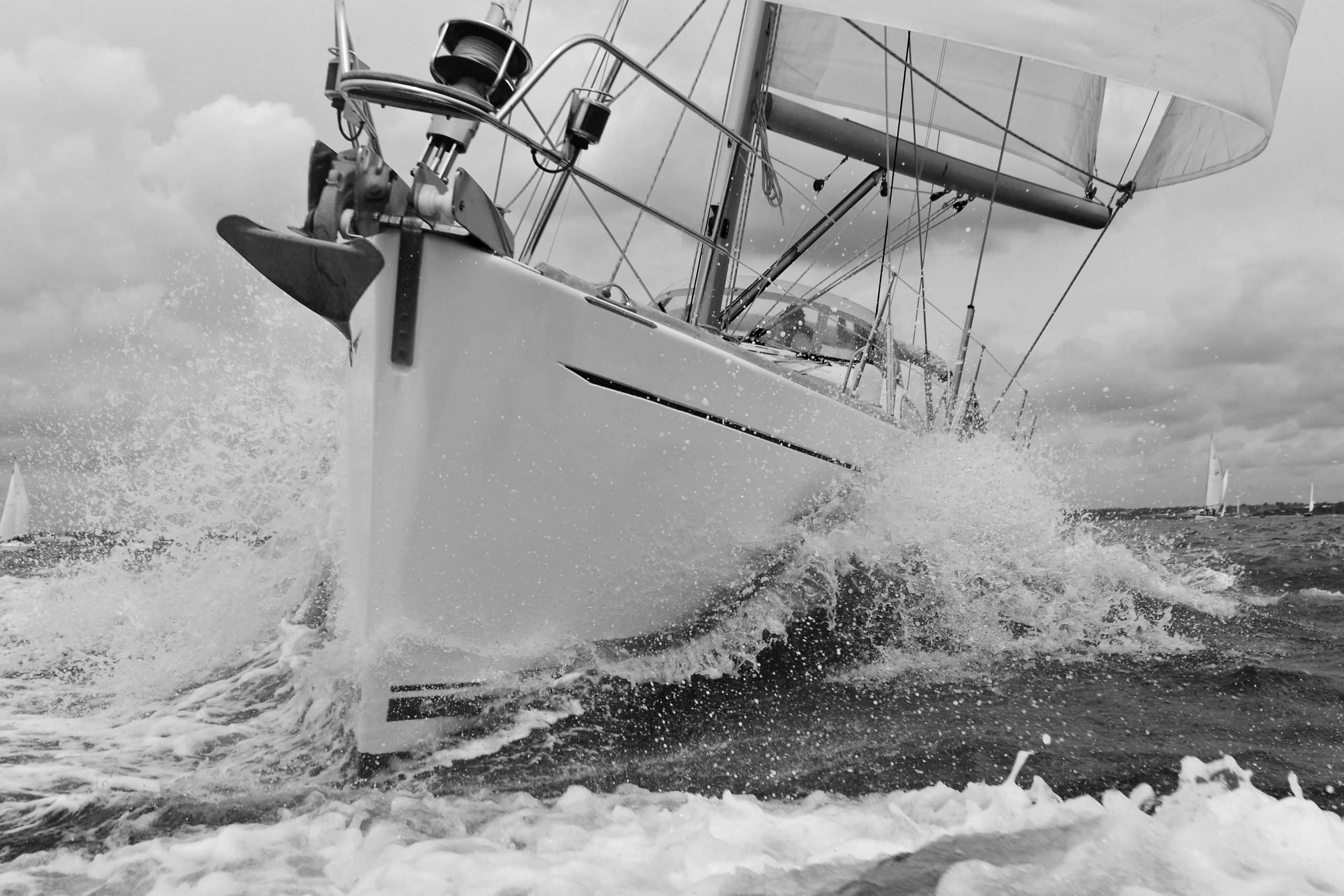 Title: Close up of sailing boat, sailboat or yacht at sea